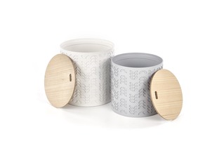 zestaw 2 ław, wymiary: fi35/35 cm oraz fi39/40 cm, materiał: MDF lakierowany, kolor: biały mat / popielaty mat
