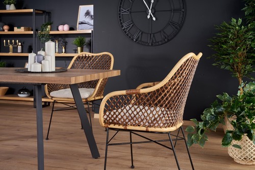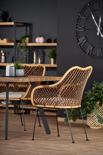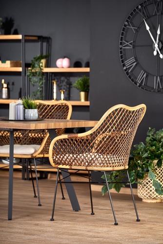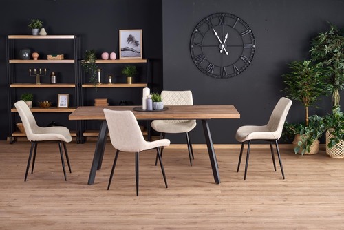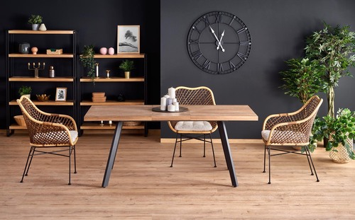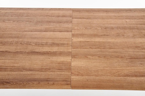 wymiary: 140÷180/85/76 cm, stół rozkładany, materiał: MDF laminowany / stal malowana proszkowo, kolor: blat - orzech miodowy, nogi - czarny UWAGA: po wylaniu jakichkolwiek płynów na blat stołu należy niezwłocznie wytrzeć go do sucha w celu uniknięcia wchłonięcia wody przez materiał blatu.