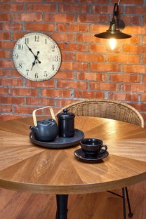 CARMELO stół okrągły, blat - orzech, noga - czarny (3p=1szt)