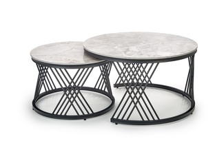 wymiary: fi60/40 cm oraz fi80/46 cm, zestaw 2 ław, materiał: spiek / stal malowana proszkowo, kolor: popielaty marmur