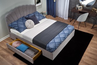 łóżko z szufladą, materiał: tkanina / stal malowana proszkowo, kolor: jasny popiel, * łóżko bez materaca, w opcji materac POLARIS 160 lub SYRIUSZ 160