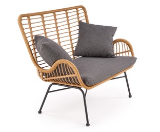 wymiary: 96/120/70/45 cm, materiał: rattan syntetyczny / tkanina / stal malowana proszkowo: kolor: naturalny - popielaty